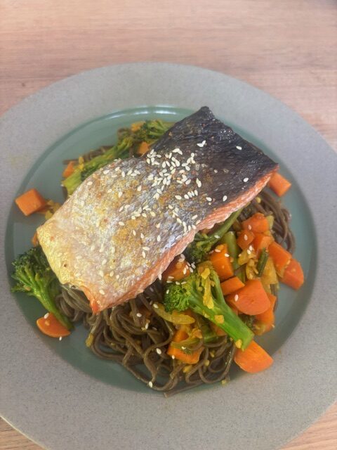 One of my favourite ways to include salmon is in a simple, flavour-packed salmon and soba noodle dish, which brings together omega-3s, fibre-rich vegetables, healthy fats, and anti-inflammatory spices. This recipe is featured in my book, and I’ve shared it below so you can try it yourself.